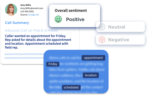Gain insight into every conversation with automatic AI-powered transcription and analysis that reveals keywords, buying intent, and lead quality.